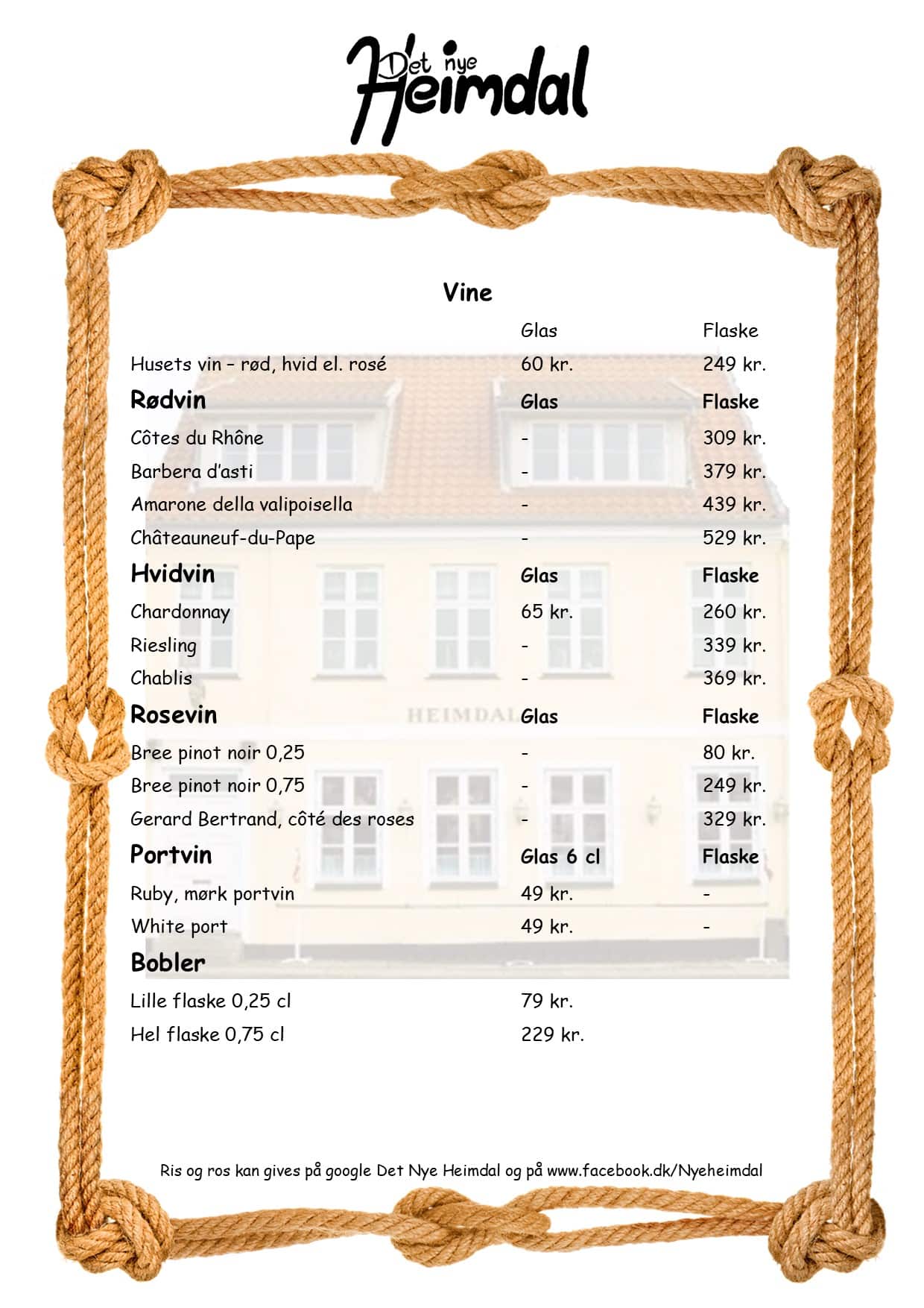 Der er vine fra forskellige lande, så der er lidt for enhver smag. Det varierer hvad der er på som husets vin, men der sikres altid god kvalitet.
